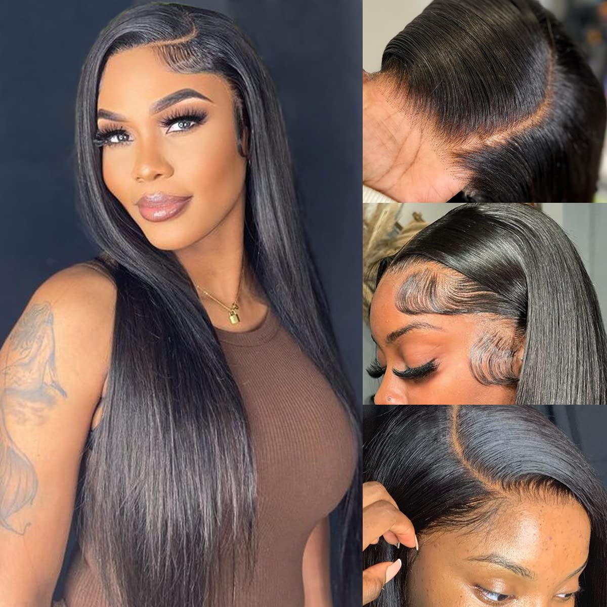 Amazon Com 22 Inch Hd Straight Lace Front Wigs Human Hair 13x4 Pre Plucked Lace Front Wigs Human Hair 150 Density Straight Frontal Wigs Human Hair Glueless Straight Human Hair Wigs Hd